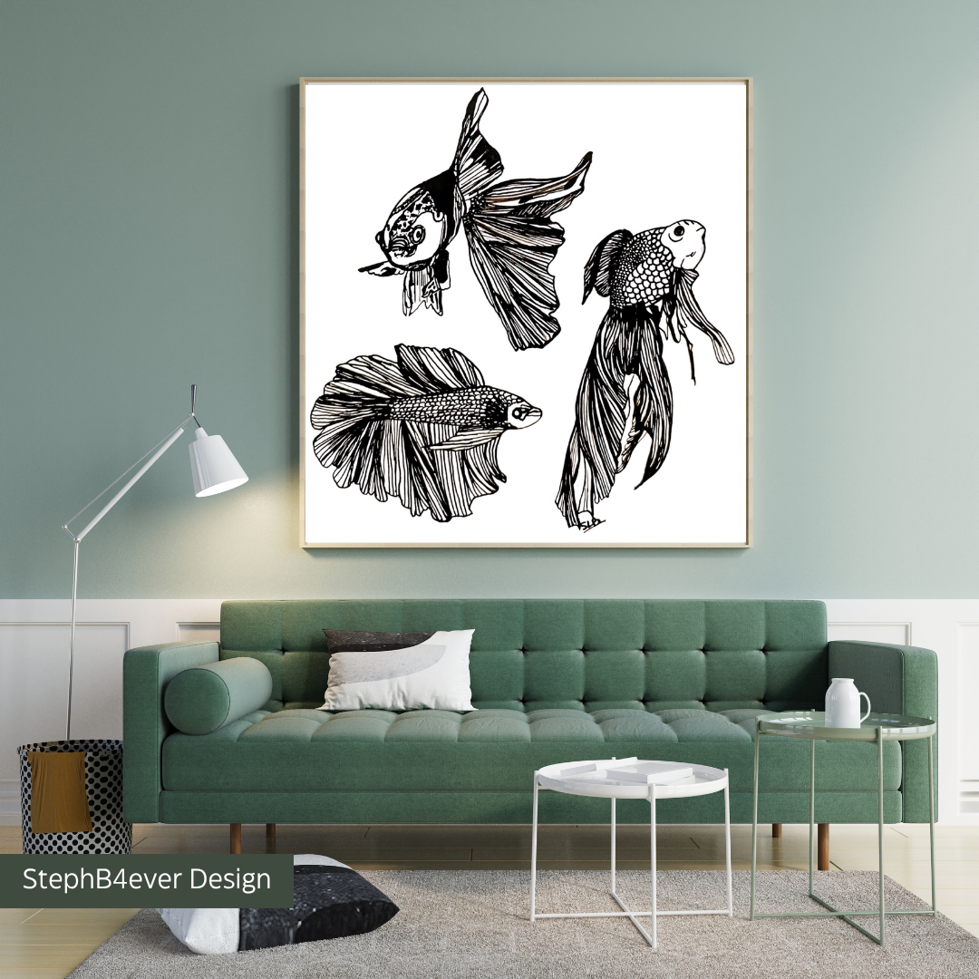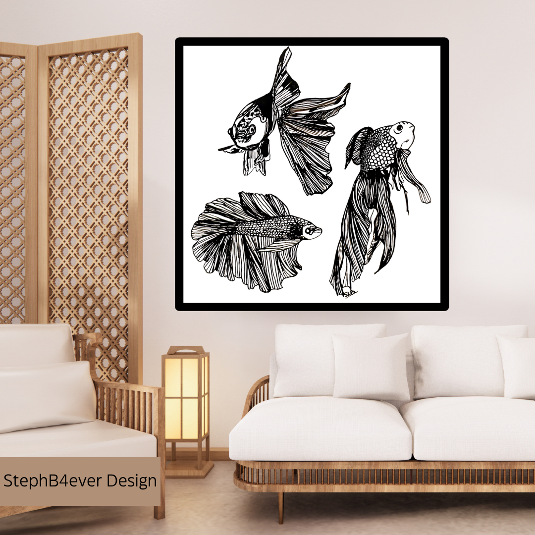 Welcome to StephB4ever Design! This original Acrylic painting is printed in collaboration with Printful, a high-quality printing service that prints on quality canvas and then ships directly to you on demand. StephB4ever Design was inspired by growing up caring for beautiful, fancy goldfish. Enjoy this artwork as each piece is designed for art collectors who appreciate bold, elegant design.