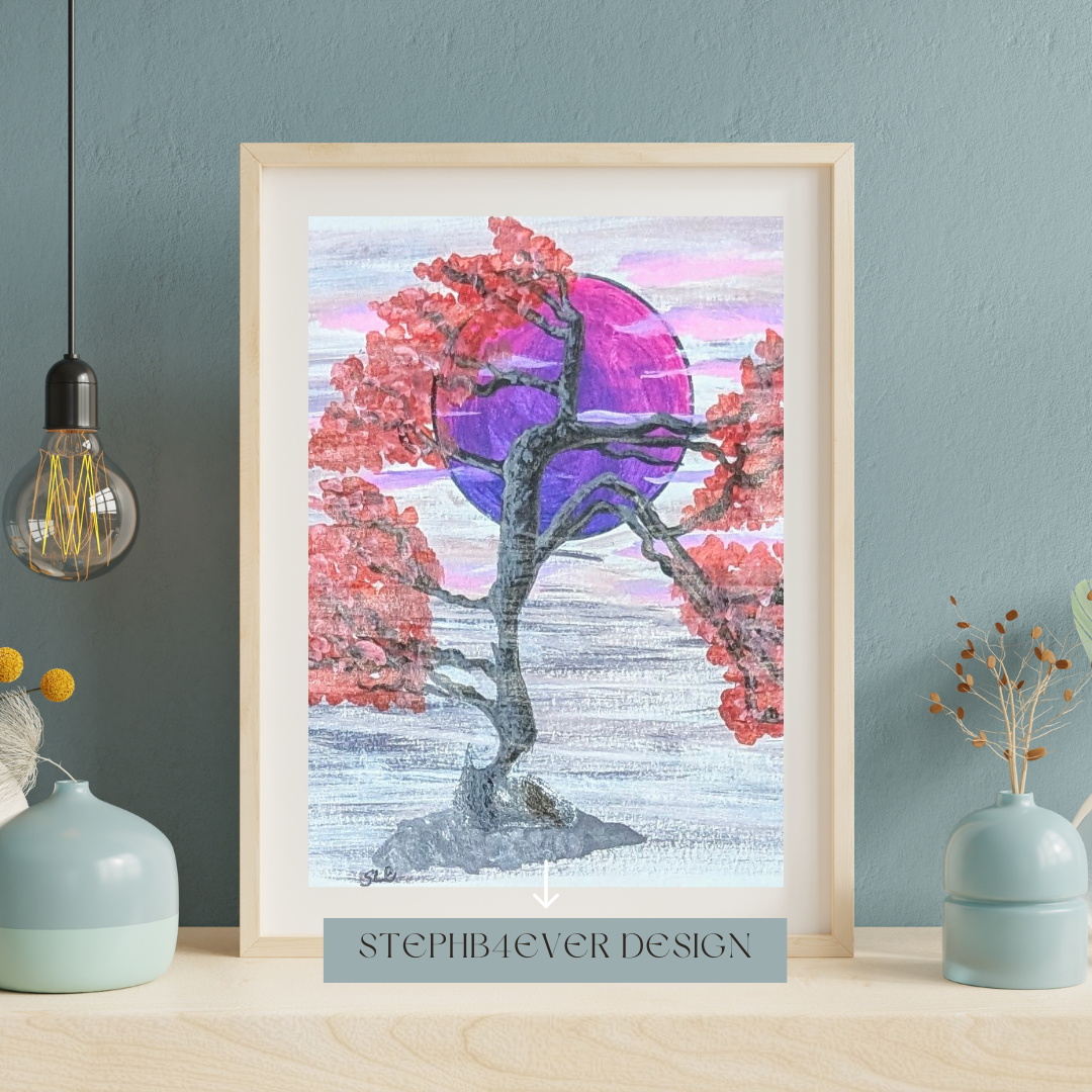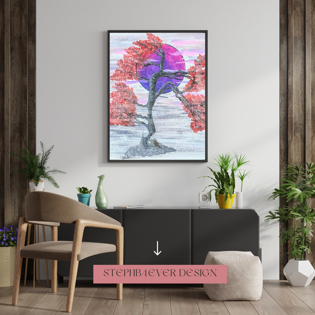 Welcome to StephB4ever Design!  This original Line Art Acrylic painting print is printed in collaboration with Printful, a high-quality printing service that prints on quality canvas and then ships directly to you on demand. StephB4ever Design has always been inspired by Bonsai trees because as it is a miniature replica of a full-sized tree, the way it is trained and shaped and having the beauty of nature in small spaces. Each piece is designed for art collectors who appreciate bold, elegant design.