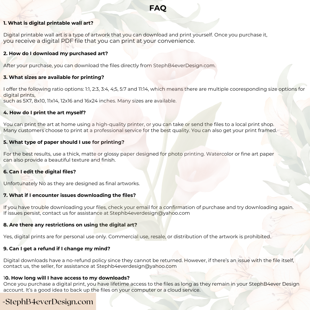 https://StephB4everDesign.com. Â You can choose from various sizes. Â FRAME NOT INCLUDED AS THIS IS A DIGITAL PRODUCT.