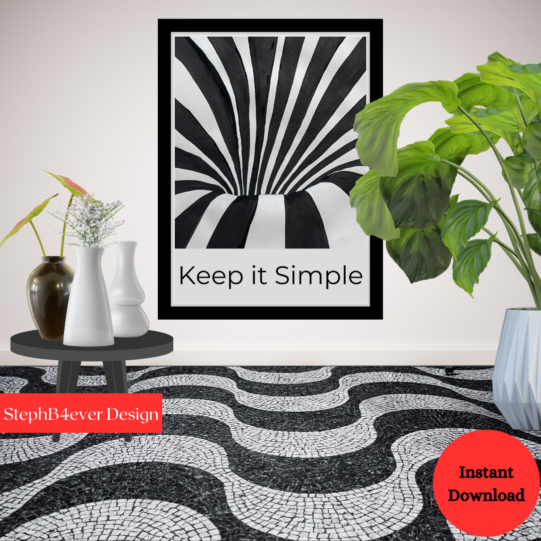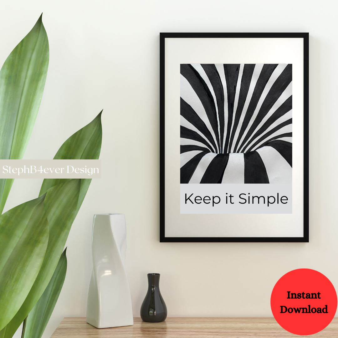Welcome to StephB4everDesign. This original Wall Decor is called “The illusion of Keep it simple in black and white.” You will receive 2 High-Resolution, High-Quality PDF Printable, Digital files at 300 DPI (which means even when enlarged the Inspirational quote artwork will continue to be clear, not blurry or pixelated) and an instructional file that can also be printed. You can print the downloaded files yourself or at an online print service or local print shop.