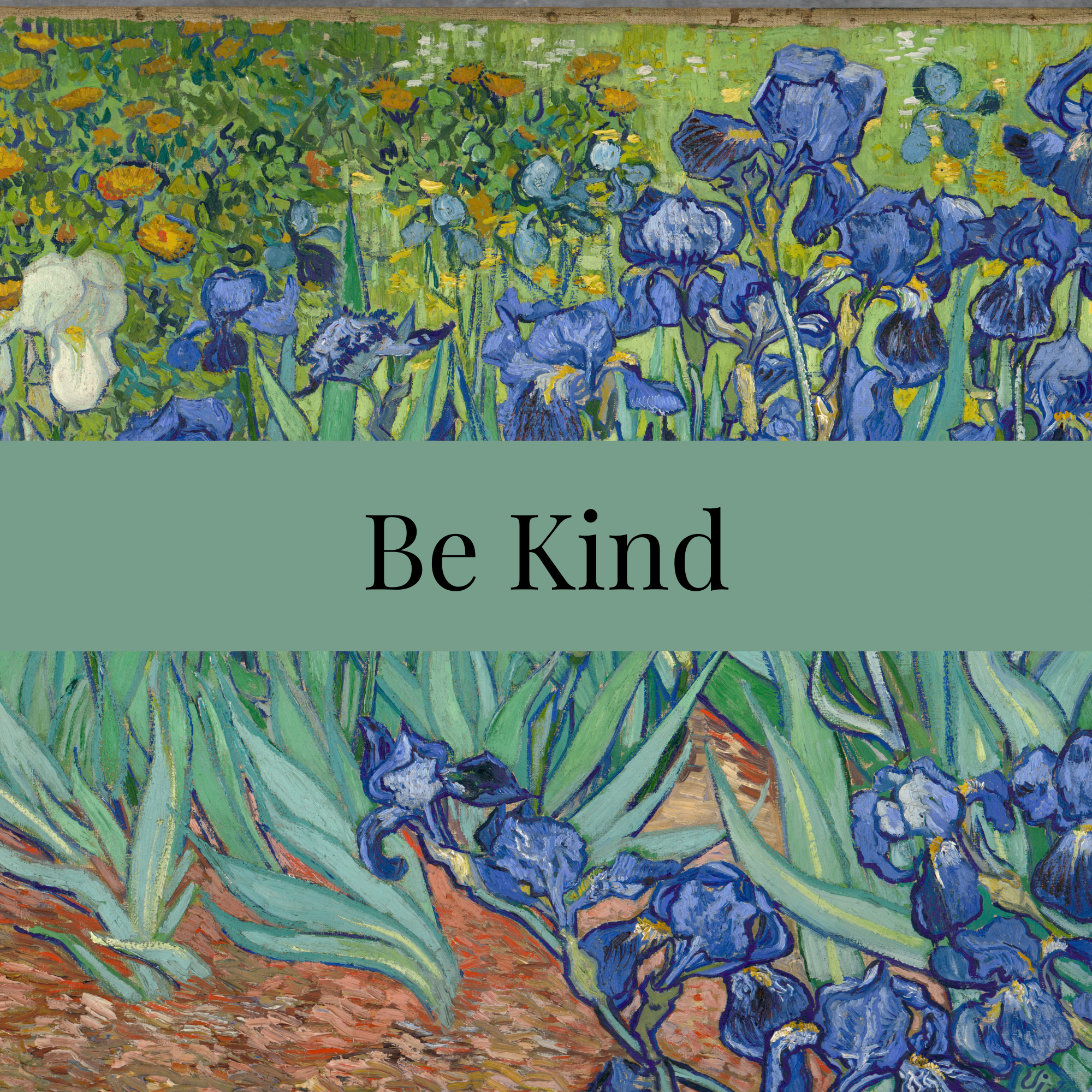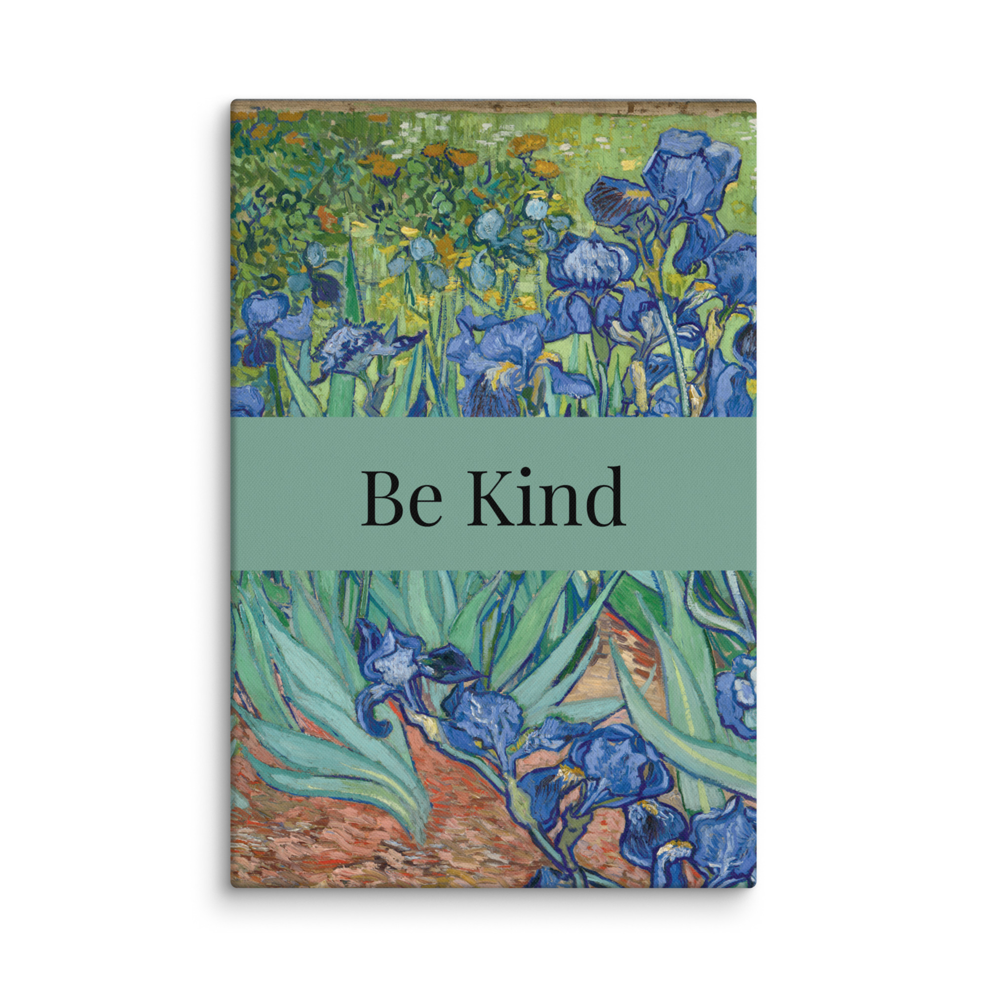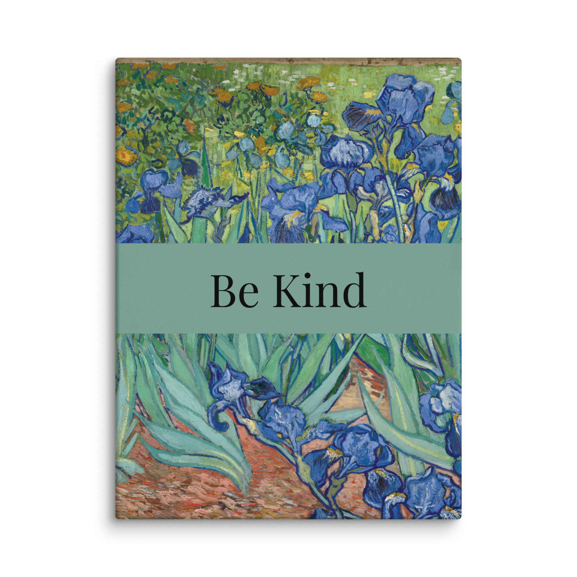 Welcome to StephB4ever Design. This is called “Irises” by Vincent Van Gogh, 1889, it includes a Motivational Quote – “Be Kind”. Stephb4ever Design was inspired by the scripture at 1 Corinthians 13:4 that shows how love behaves, it says “Love is patient and kind.” It is a good reminder in an unkind world. If you choose this Classic Painting you will bring home a piece of art history – add this to your cart today!!