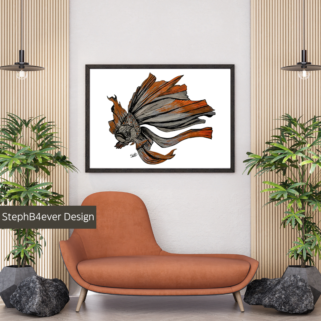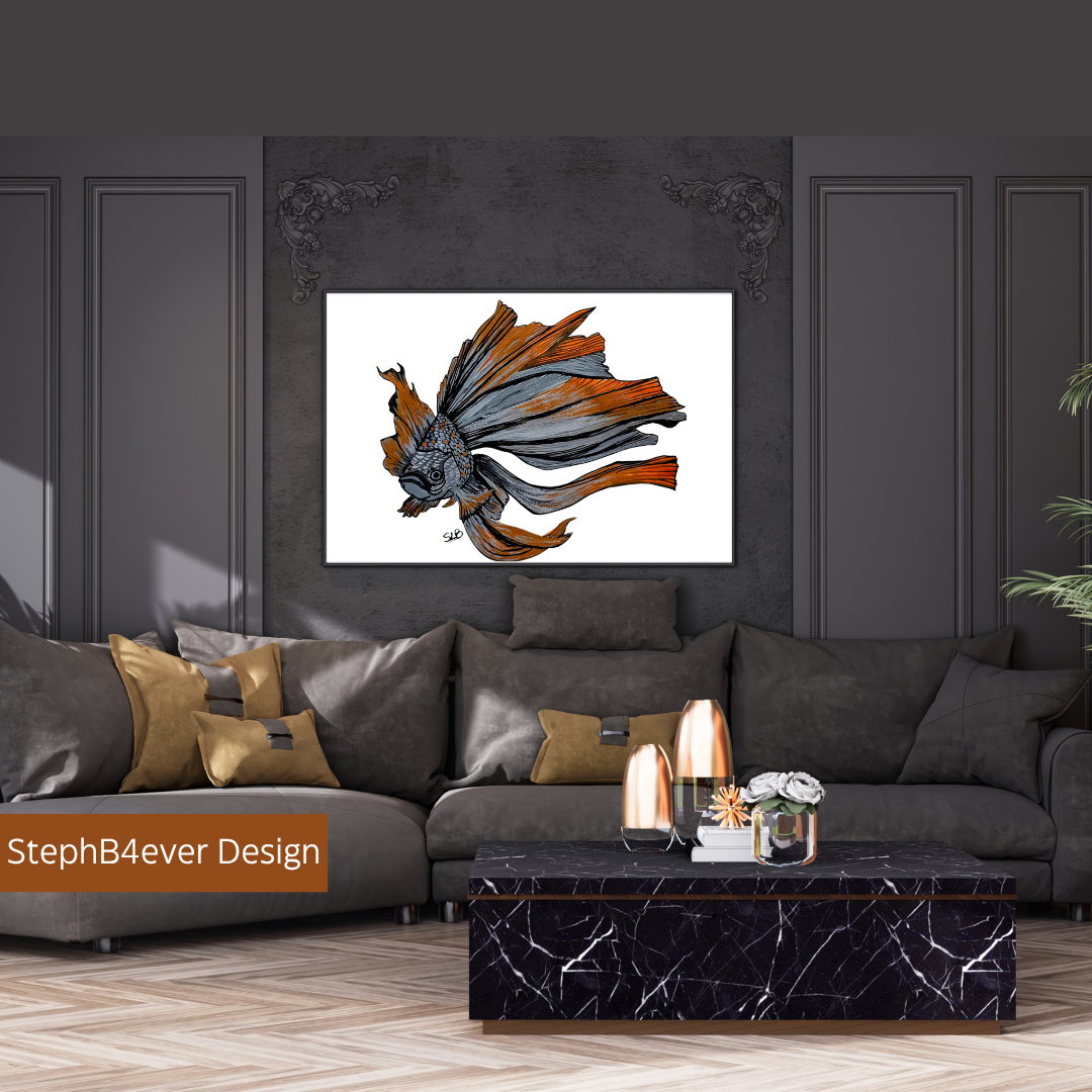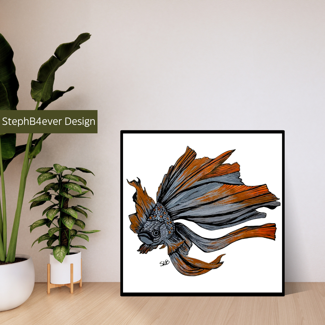Welcome to StephB4ever Design! This original Acrylic painting is printed in collaboration with Printful, a high-quality printing service that prints on quality canvas and then ships directly to you on demand. StephB4ever Design was inspired by caring for beautiful, fancy goldfish as a little girl. Enjoy this artwork as each piece is designed for art collectors who appreciate bold, elegant design.