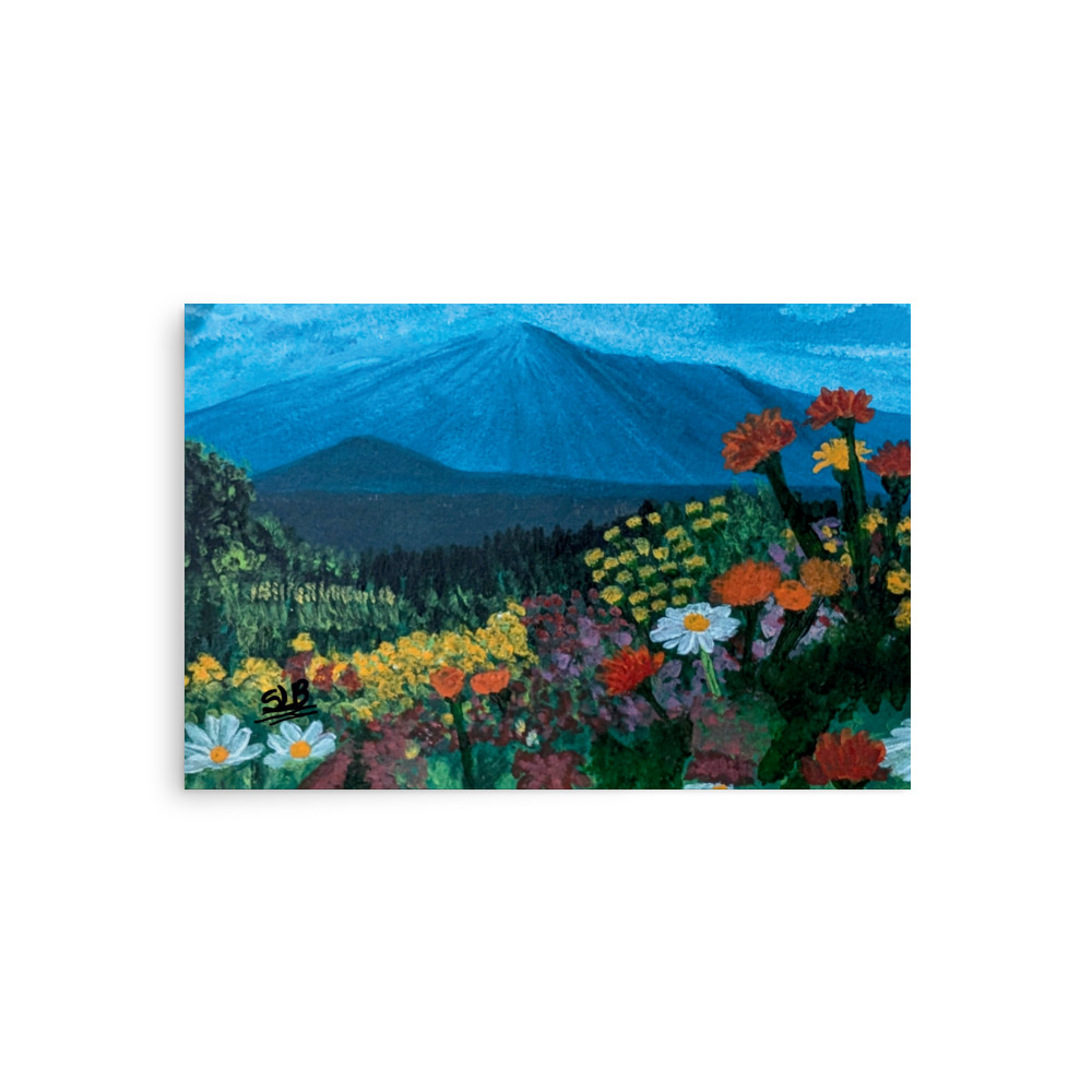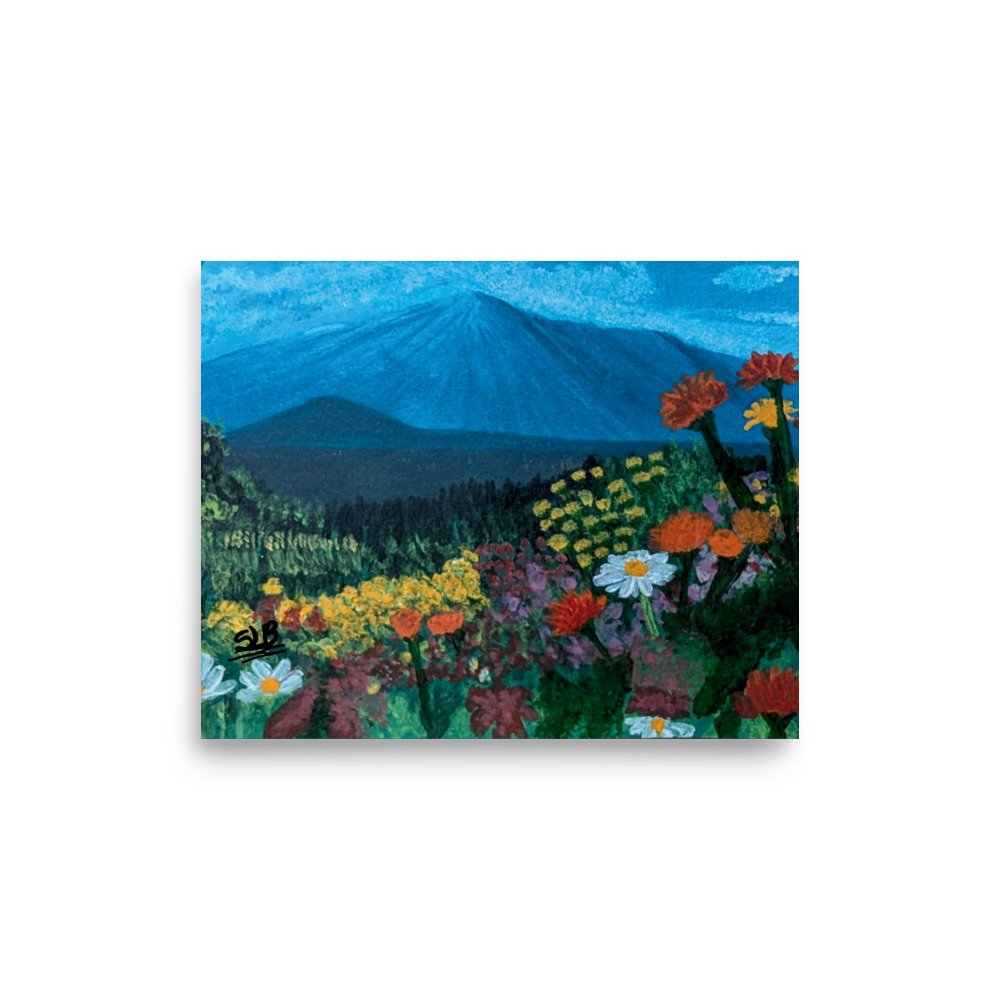 Welcome to StephB4ever Design!  This original Acrylic painting is printed in collaboration with Printful, a high-quality printing service that prints on quality paper and then ships directly to you on demand. StephB4ever Design was inspired by the stillness and serenity of vibrant wildflowers with the beauty of Mt. Fuji as the back drop and each piece is designed for art collectors who appreciate bold, elegant design.